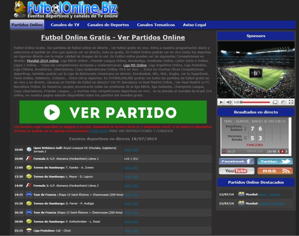 http://livetv.sx/en/allupcomingsports/1/#top DESCRIPCIÓN: Sin duda alguna, de las páginas web más completas actualmente en internet. Live Sports está muy bien distribuida